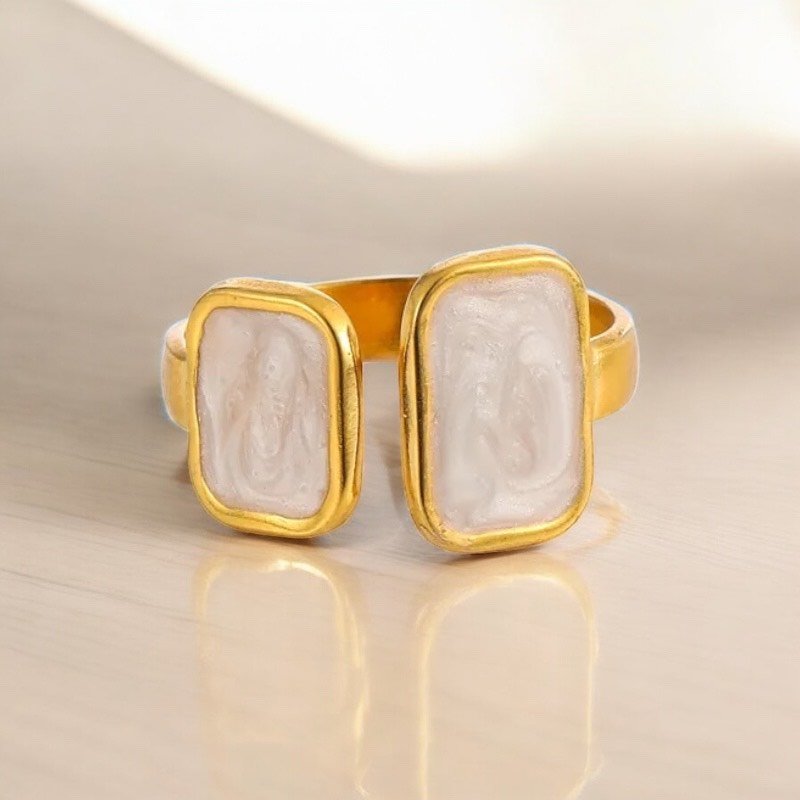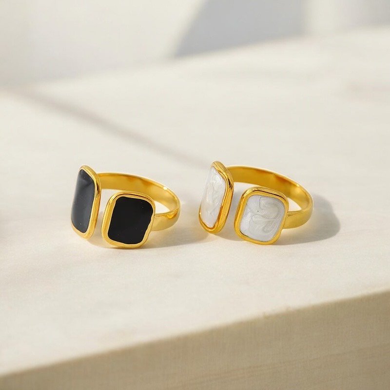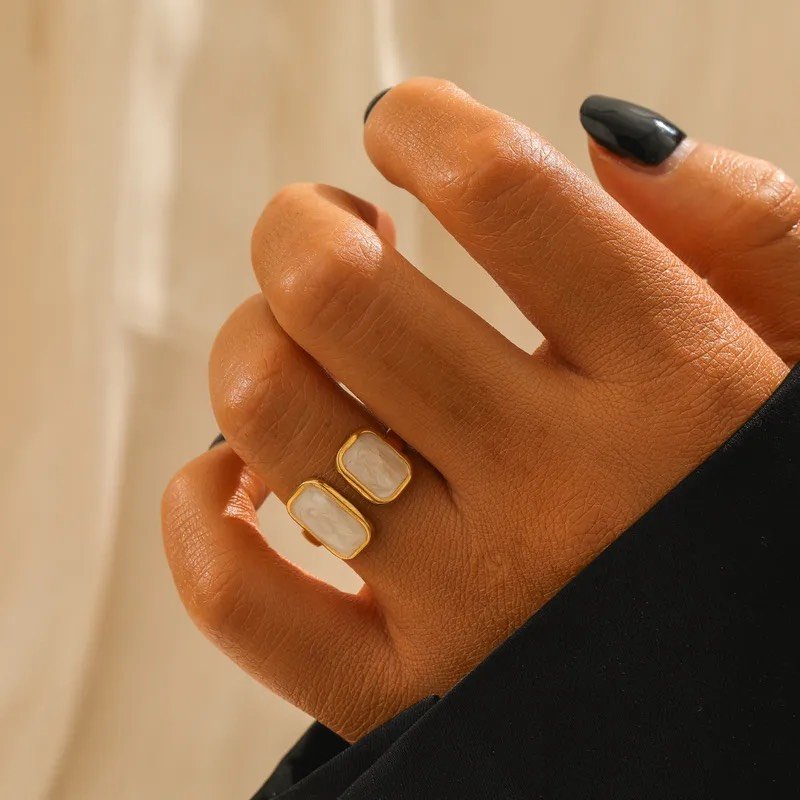(White) Modern open square frame ring for women with a bold geometric design. A minimalist statement ring perfect for everyday and contemporary styling.